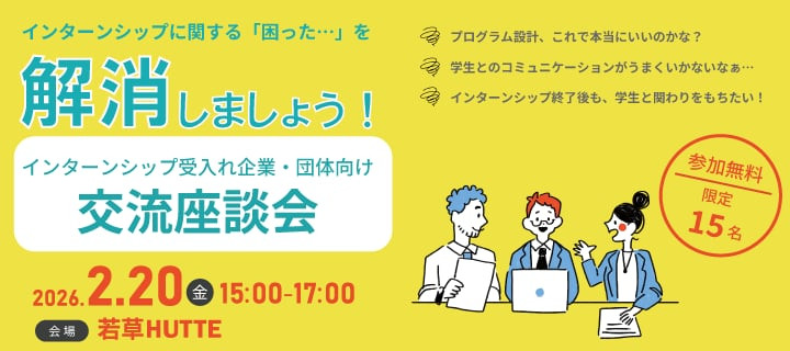 - \インターンシップ受け入れ企業・団体向け/ 交流座談会