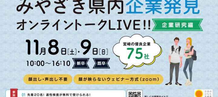 - みやざき県内企業発見オンライントークLIVE!!【企業研究編】参加者募集!