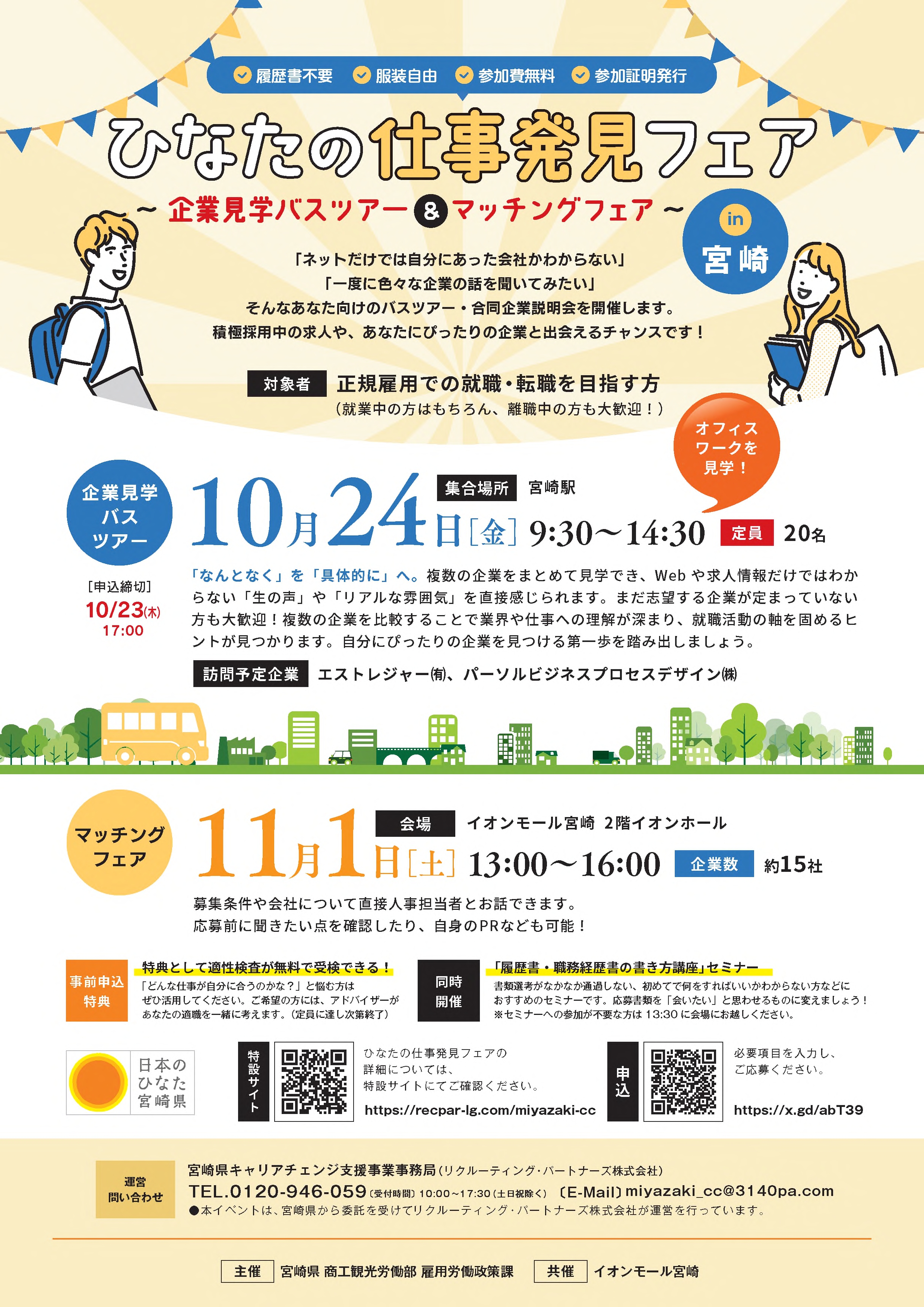 - ひなたの仕事発見フェア~企業見学バスツアー&マッチングフェア~ in宮崎