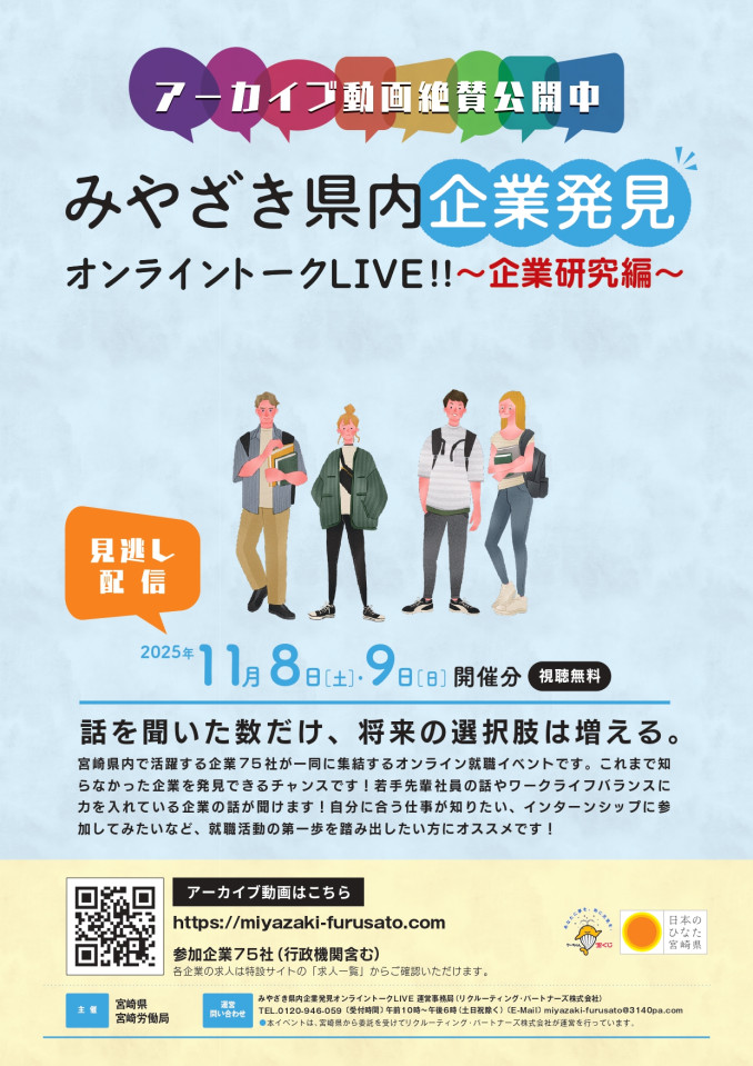 「みやざき県内企業発見オンライントークLIVE!!【企業研究編】」のアーカイブ配信が始まりました!